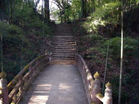 | 管理棟前のこの橋を渡り山道へ |