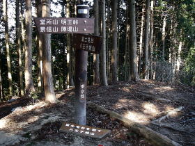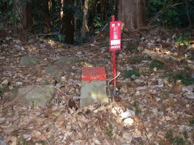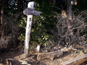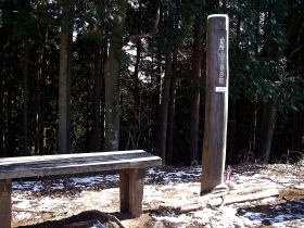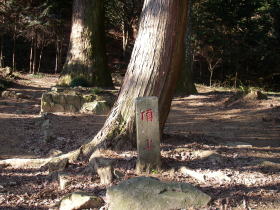 | 八王子神社前の頂上と書いた石柱。神社はここよりちょっと高いところにある。 |