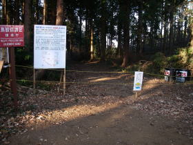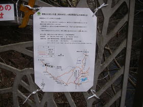 | 三沢峠で閉ざされている梅ノ木平ヘの道。橋の架替工事のためと書いてありました。 |