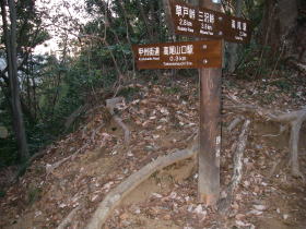 | 景信山に向かうとき急いでいたため巻き道、巻き道と辿っていたら、小仏峠から景信山に向かう巾の広い道に出てびっくりしました。景信山を巻いてしまったのです。景信山の西側に巻き道があるなんて知りませんでした。 |