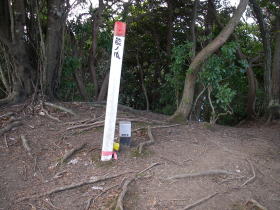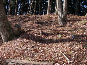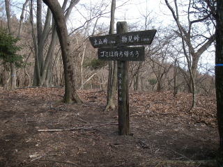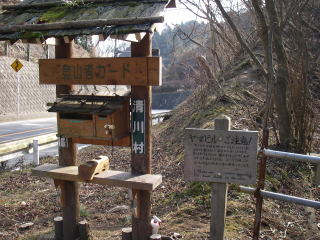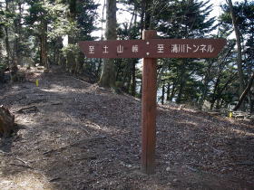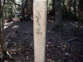 | 物見峠分岐に着いたのが12時10分頃で、普通のペースで歩くと土山峠で相当長時間バスを待つことになりそうでした。ゆっくり歩いて待ち時間を少なくしようかなどと考えながら歩いて行くと、土山峠まで2kmという道標があり、急げば1本早いバスに乗れそうな気がして、急ぐことにしました。実際はそんなに速くはありませんが辺室山に駆け上がり、駆け下るといった感じで土山峠に着き、バスに乗ることができました。あとから考えるとバカなことをしたなあといったところです。 |