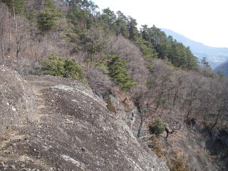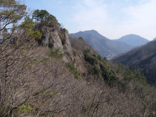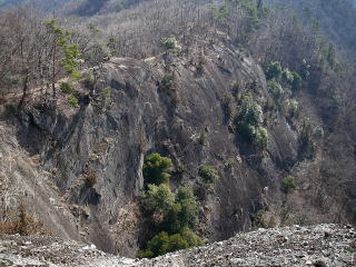 | 稚児落しの岩壁は高さも幅もあり立派でした。こんな景観を手軽に見ることができることが岩殿山の人気の理由のひとつなのかもしれません。 この後、大月駅付近まで行き、菊花山の登山口に向かいました。 |
