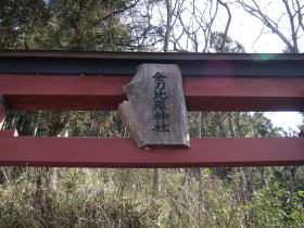 | 菊花山の登山口は国道20号の大月バイパスの脇にあり、道標と共に金刀比羅神社の鳥居がありました。10分ほど登ったところには金刀比羅神社の社があります。また登山口から岩殿山と大月の街が見渡せます。 |
