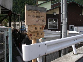| 駅の近くにはハイキングの道標はなく、青梅街道からの分岐に大多摩ウォーキング・トレイルの道標があり、寸庭橋に導いていました。 |