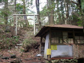 | 鳥居に金比羅神社と書いてあったが社はない。鳥居をくぐって左に進む。 |