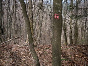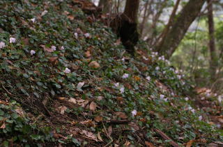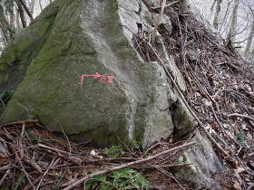 | イワウチワはちょうど時期もよくたくさん咲いていましたが、事前調査が不足していて特定の場所にだけしかないことを知らず、あちこちにあるのだろうと思い込んでいて失敗しました。 鍋割山北尾根の大部分にははっきりとした道がありましたが、分かりにくいところはピンクの道標に助けられました。私がピンクの道標に気づいたのはこの2つだけで、しかもポイントをしっかり押さえた場所にだけにありました。 |