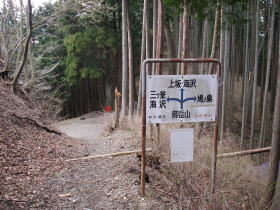 | 大楢峠。峠のちょっと手前で御岳山からの道に出ました。 |