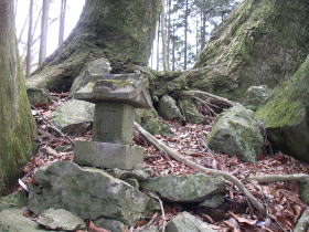 | 2.5万図のP691のちょっと先に小楢峠という道標があり、石祠がありました。 |