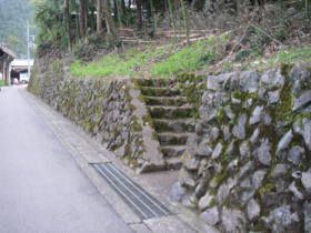 | この石段を下って車道に出ましたがハイキングの道標はありません。雲仙橋の近くでした。 |