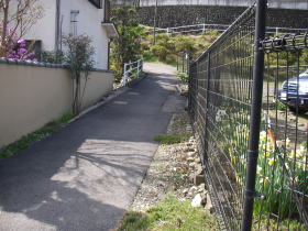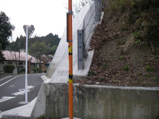 | 下山地点。新しく作った道の法面の擁壁のスロープの脇を金網を頼りに下りました。 |