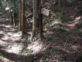 | 2.5万図558m地点の道標。558m地点は斜面にあり峰ではない |