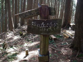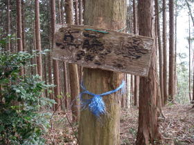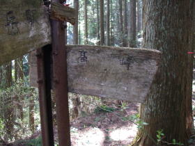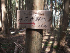 | 高峰山頂の道標。御岳駅へ50分と書いてありました。 |