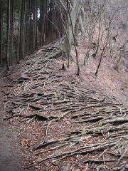 | 鳴虫山への道は木の根がむき出しになっているところが多い。 |