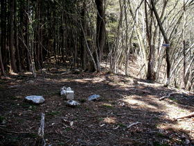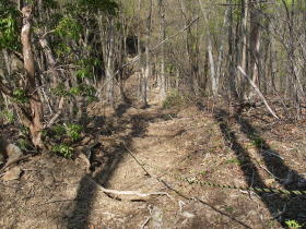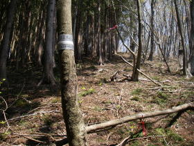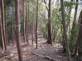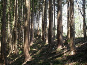 | 稜線は東京と埼玉の境で、東京側は杉の人工林、埼玉側は若い雑木林のところが多い。 |