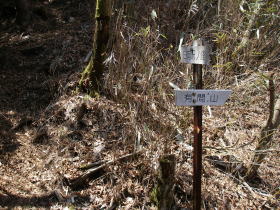 | 長尾ノ丸分岐の道標。直進する道があり、気付かなければ巻いてしまったかも。 |