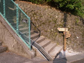 | 車道出合。青梅街道に出るものと思っていたが、違った。ゴンザス尾根入り口の道標がありました。 |