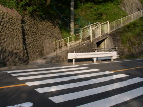 | 青梅街道には写真奥のスロープを下って出ました。 |