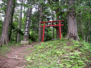 | 墓の手前に神社の裏手に行く道があり、10mほどで道はなくなりこの赤布がありました。 |