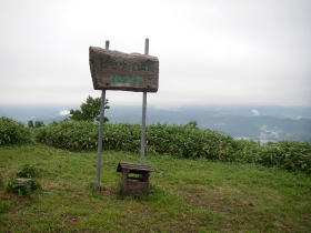 | 展望台。近くに二合目という道標ありました。ガスがかかって遠くは見えない状態で、何が展望できるのか分かりませんでした。 |