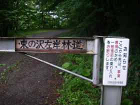 | ピセナイ山の登山口に至る林道にはゲートがあり、ゲートの鍵を借りるため予め日高南部森林管理署に入林承認申請書を提出しておきました。前日午後苫小牧港でフェリーから下りた後、森林管理署に直行し入林承認証と共に鍵を借りました。 左の写真の東の沢左岸林道の、現在閉鎖されている静内湖キャンプ場付近と、それから分岐するピセナイ林道の2個所にゲートがありました。 よく整備された走りやすい林道でした。 |