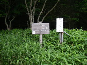 | 豊似岳。山名を書いた板は倒れていましたが、杭に立てかけて撮影しました。草書体のような字だったので豊似岳と気付くのに時間がかかりました。 |
