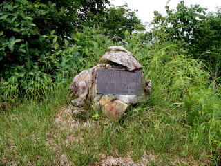 | P1121のちょっと手前の1119M地点の書かれた大樹営林署の道標。ここはちょっと藪が薄くホッとする。 |
