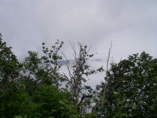 | 山頂からの展望はやっと近くの山がかすかに見えてきたといったところで、急速に展望が広がるという状況には見えませんでした。 |
