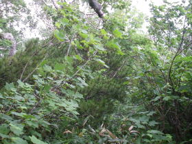 | 稜線の道。深い藪が濡れていて大変なところもありました。 |