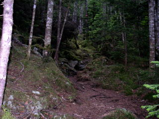 | 然別湖畔の白雲山に登ることを決め、詳細な計画を立てるために地図を見ていてこの山に気付きました。 短時間で登れて、北海道百名山にもなっているそうなので登ることにしました。 登山道は良く整備されていてあっけなく登れてしまいましたが、、薄暗い樹林の苔むした岩の道が印象的でした。 |