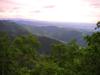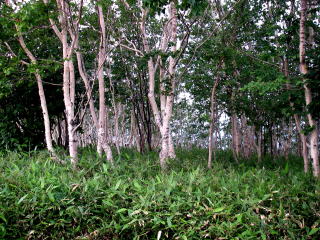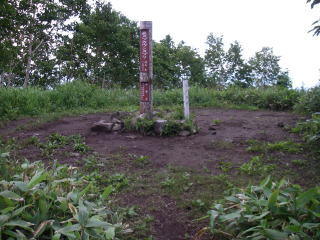 | 山頂はほぼ平で広く、多くは笹で覆われていてその周囲を樹林が囲んでいました。樹林の切れ目から十勝平野が見えましたが、もやで霞んでいました。 |
