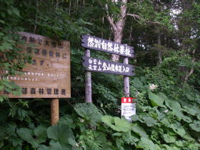 | 然別湖畔の白雲山、天望山登山口。路肩のスペースに車を置き、入林届を書いて出発 |