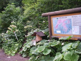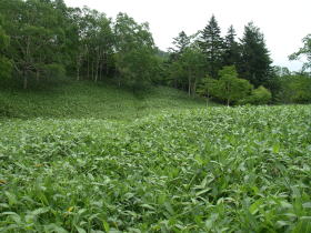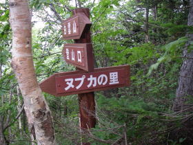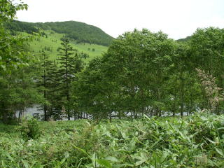 | この後、然別湖の湖畔の道を登山口まで戻りました。湖畔の道は単調でウンザリしましたが、整備された歩きやすい道でした。 山田温泉で汗を流し、ウペペサンケ山の登山口に向かいました。 |