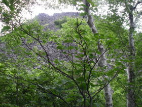 | 分岐付近からでも樹間に岩石山は見えたが、写真では分かりそうもなく、やっと撮影できたのはだいぶ近付いてから。 |