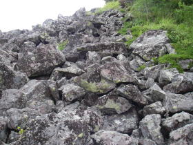 | 岩石山の斜面。岩は安定していて崩れる心配をせずに登れました。 |