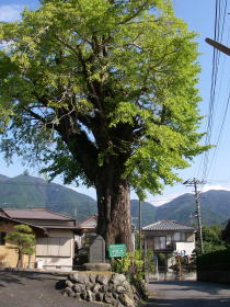 | 菩提バス停付近にはハイキング用の道標は見あたりませんでした。二ノ塔の方向に進むと間もなくこの大きな銀杏の木がありました。 菩提会館の敷地にあり、秦野市指定の保存樹木で、周囲4.5mと書いてありました。初めてのコースだとこんな木を思いがけず見ることができ、ちょっと得をした気分です。 この後も二ノ塔をガイドする道標は見あたらず、桜沢橋、葛葉の泉を過ぎて林道から尾根に取り付くところで初めて道標を目にしました。 秦野駅のヤビツ峠行きのバス停には大勢のハイカーがいましたが、菩提のバス停で下りたのは私だけでしたので、菩提から二ノ塔に登る人は少ないようです。道標がなかったのもそのためかも知れません。 |