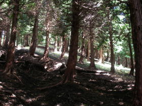 | 2ヵ月半ぶりの山行なのでちょっと不安がありましたが、予定通り大倉に下山できました。二ノ塔への道を歩く人はあまり多くはないようですが、しっかりとした道で迷うような所はありませんでした。新しい靴跡もあり、それなりの人数の人が歩いているようです。この道には丹沢名物ともいわれる階段が全くなかったのは意外でした。 天神尾根の道は改修されていて歩きやすいのですが、散乱している丸太に目を奪われて、ちょっと異様な感覚で歩きました。 |
