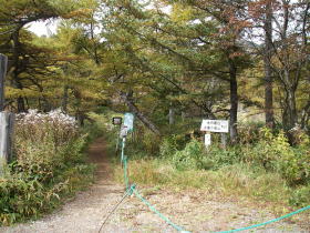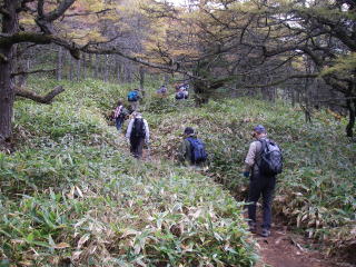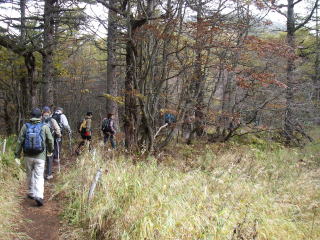 | 紅葉のはじまったなだらかな道を東篭ノ登山に向かう |