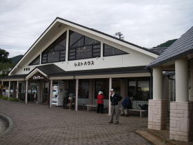 | 大倉バス停で下りた人は20名ほどで、出発前の準備をする人で混雑することの多いレストハウス前のベンチは空いていました。 |