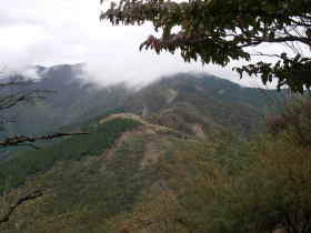 | 三ノ塔の山頂間近から烏尾山荘は良く見えましたが塔ノ岳の方は雲がかかっていました。 |