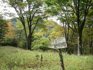 | キャンプ場からの登山口の道標 |