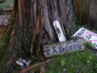 | 諸戸山林事務所前にある大山西尾根登山口の道標 |