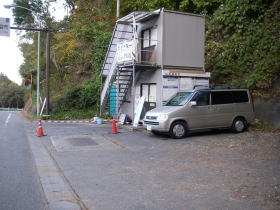 道坂トンネルの駐車場には工事用の事務所のような建物ができ狭くなっている。