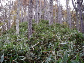| 西別尾根の分岐点手前の道。笹があるところはルートがはっきりしている。 |