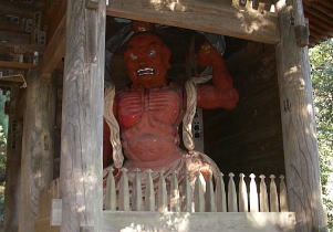 | 日向薬師の山門の仁王様にまずご挨拶 |