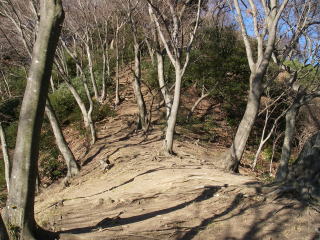 | 日向山。私が歩いてきた方にはロープがあり、私有地につき通行禁止と書いてありました。 |