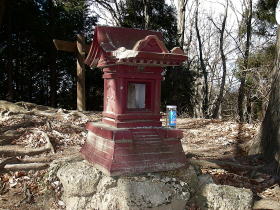 | 大明神山。赤い石祠は珍しいかも。 |