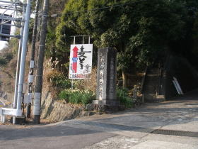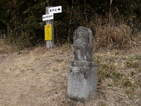 | 岩戸観音分岐の道標。歩いてきた方には伊豆山神社、七尾とあり、伊豆山神社の方から来たほうが便利なのかも。 |