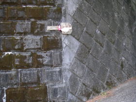 | ウルシガ窪第一配水池のフェンス。門川、千歳橋への道標が付いていました。 |