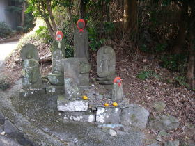 | 三十五丁目と書いた台座に乗っている石仏。ここから来宮駅に向かう道は綺麗に刈り払われ広々としている。防火帯なのかもしれない。 |