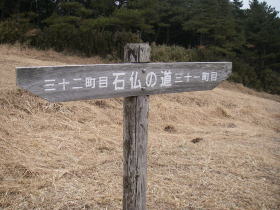 | 石仏の道の道標。東光寺から街の人家が多くなる辺りまでを石仏の道というらしい。 |
